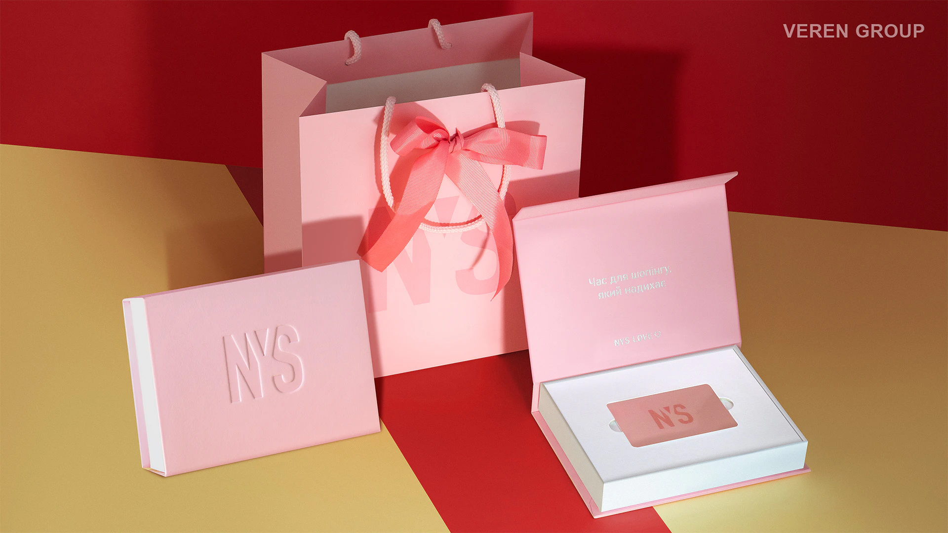 Додатково ми виготовили пластикову подарункову карту відповідно до айдентики NYS Shop, щоб пакування та наповнення працювали як єдина система.